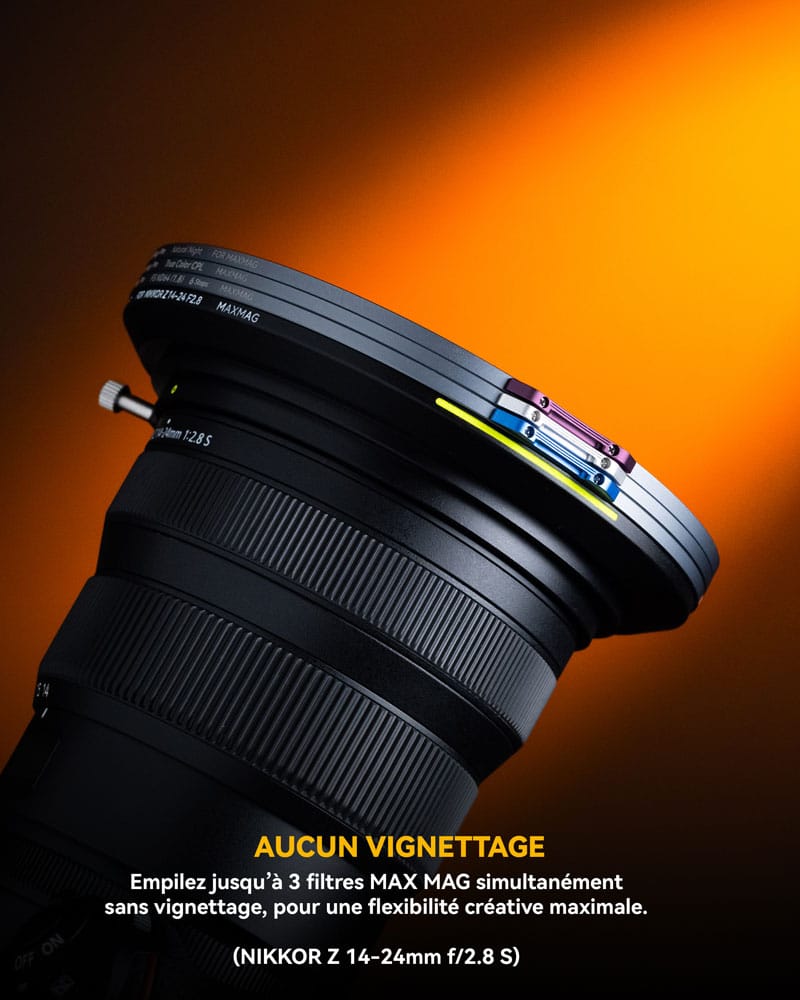 Cet adaptateur propose le système de filtres MAXMAG le plus compact disponible pour le NIKKOR Z 14-24mm f/2.8 S.