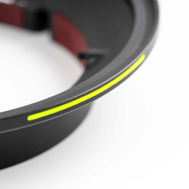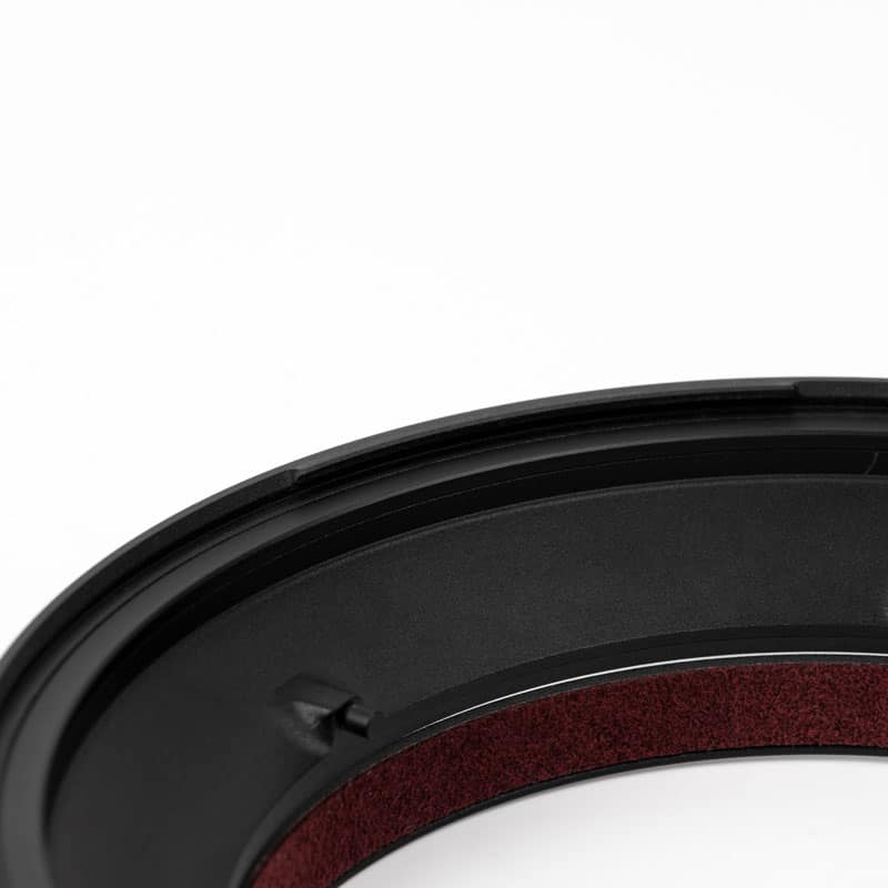 L’intérieur doublé d’Alcantara® protège la finition du fût de l’objectif tout en assurant un maintien ferme.